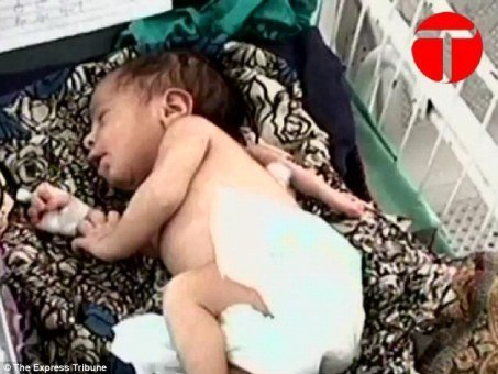 Bé gái có 3 tay chào đời vài ngày sau khi bé trai Umar Farooq chào đời với di tật bẩm sinh có 6 chân ở ở Sukkur, Pakistan. Bé trai Umar Farooq vừa được phẫu thuật cắt bỏ 4 chân thừa thành công tại Viện nhi Quốc gia Pakistan ở thành phố Karachi.