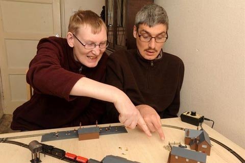 Tất cả những gì cuốn hút bọn trẻ con đều làm anh em nhà Clark thích thú. Ảnh trên chụp hai anh em đang cùng chơi bộ đồ chơi tàu hỏa. Ảnh: Daily Mirror |