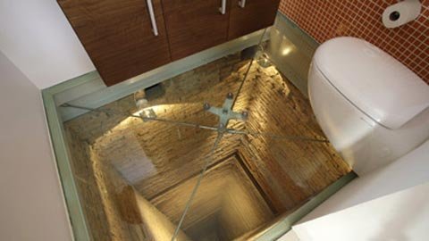 Mỗi khi những người chủ của biệt thự penthouse đi vệ sinh hoặc đánh răng, rửa mặt, họ có thể nhìn xuyên qua lớp sàn kính tới đáy của đường thông thang máy sâu hun hút.