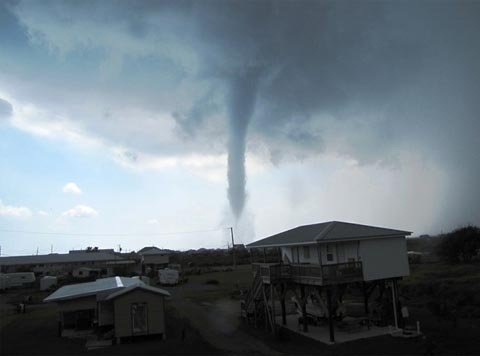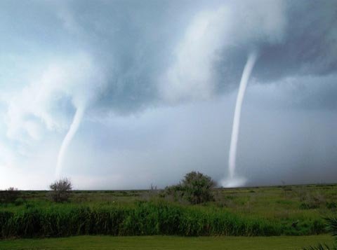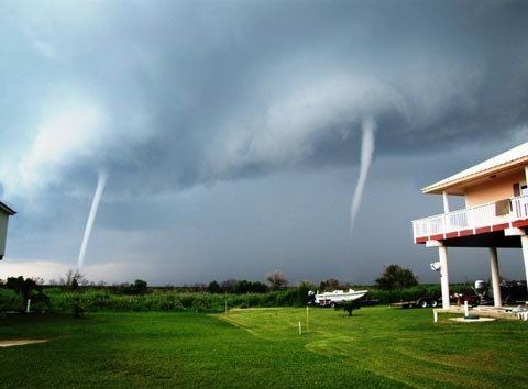 Cặp vòi rồng song sinh ra đời ngay trước một cơn bão dữ dội quét qua đảo Grand, Louisiana chiều ngày 9/5. Tuổi thọ của chúng khá ngắn ngủi, chỉ dài khoảng 10 – 15 phút.