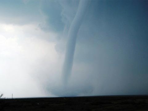 Một vòi rồng càn quét các chướng ngại vật trên đường di chuyển của nó, cắt đứt hệ thống điện và hủy hoại nhà cửa.