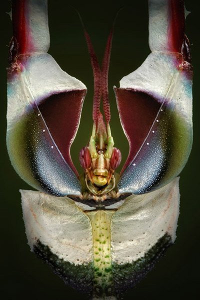 Con bọ ngựa hoa quỷ châu Phi này đang giơ các chân trước dọa nạt kẻ khác.
