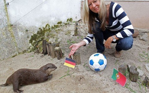 1. Sau Paul, Đức tiếp tục là cái nôi sản sinh ra các ‘nhà tiên tri’ động vật dự đoán kết quả trận đấu tại các giải bóng đá lớn. Mới đây, vườn thú ở Aue của Đức đã giới thiệu một con rái cá nhỏ để dự đoán kết quả các trận đấu tại Euro 2012. Chú rái cá này đã dự đoán Đức giành chiến thắng trong trận đấu đầu tiên với Bồ Đào Nha vào 9/6 tới.