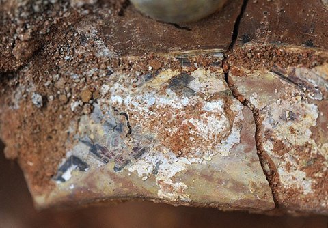 Một mảnh gốm được tìm thấy cùng với những bức tượng binh mã. |