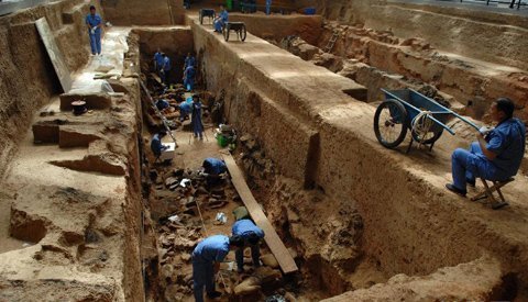 Sau 3 năm tiến hành khai quật, bắt đầu từ 13/6/199 tới tháng 5/2012, các nhà khảo cổ Trung Quốc đã đưa ra khỏi lòng đất hàng trăm cổ vật bao gồm xe ngựa, binh khí, công cụ sản xuất cho tới tượng binh mã.