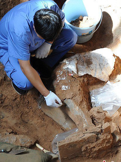 Việc khai quật được thực hiện rất công phu. Ảnh: Tân Hoa Xã. |
