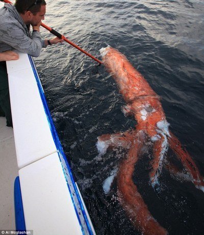 | Thân của con mực khổng lồ này dài khoảng 3m |