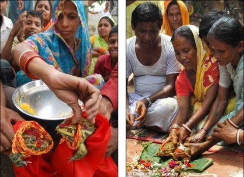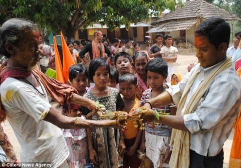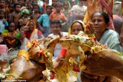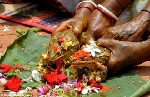 Người dân tại một ngôi làng xa xôi ở Takhatpur (Ấn Độ) đã tổ chức lễ cưới cho một đôi ếch, với hy vọng Thượng đế sẽ mang mưa tới cho ngôi làng của họ.