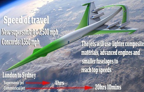 Với tốc độ lên tới 4.000 km/giờ, máy bay siêu âm thế hệ mới có thể hoàn thành hành trình từ London (Anh) đến Sydney (Australia) trong vòng 4 giờ. Trong khi đó, các máy bay chở khách tiêu chuẩn hiện nay phải mất hơn 20 giờ để hoàn thành hành trình này.
