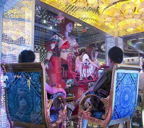 Dưới sự điều khiển của các phụ nữ “bằng xương bằng thịt” trong bộ đồ 2 mảnh hoặc những loại trang phục khác, các vũ công robot này sẽ biểu diễn nhiều điệu múa mua vui cho thực khách.