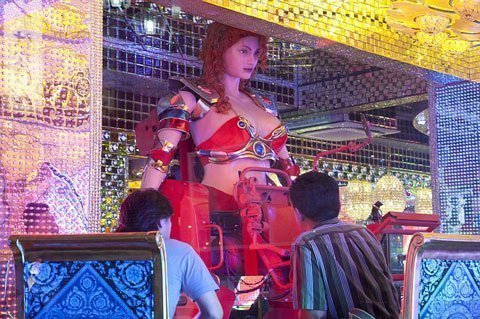Các vũ nữ robot của “Nhà hàng robot” tại khu Shinjuku, Tokyo có ngoại hình khá bắt mắt, với nửa trên giống một phụ nữ sở hữu khuôn mặt xinh đẹp, vòng 1 căng tròn gợi cảm và nửa dưới là ghế ngồi điểu khiển robot. Chúng được tạo hình theo nhân vật Valkyrie trong trò chơi đối kháng ăn khách Soul Calibur.