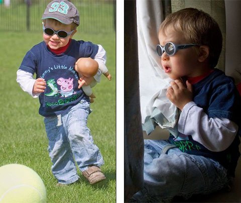 Do mắc một chứng bệnh hiếm gặp, cậu bé Harvey Webb, 3 tuổi người Anh bị mù khi tiếp xúc với ánh sáng và phải đeo kính râm loại đặc biệt mới có thể nhìn được thế giới xung quanh.