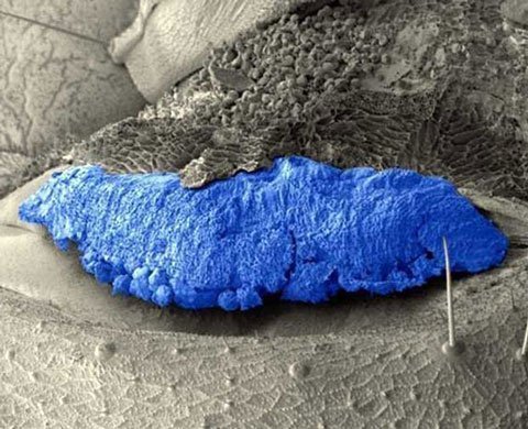 | Ảnh phóng to chất nổ màu xanh trong "ba lô" của mối thợ. Ảnh: Discovery. |