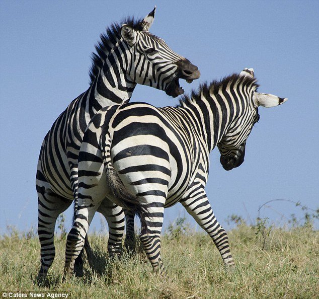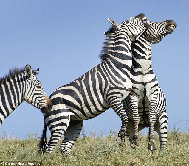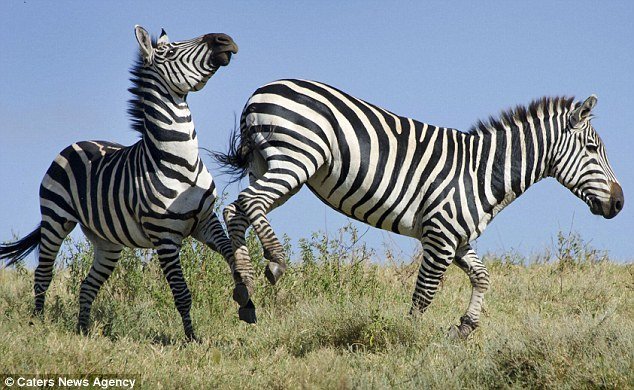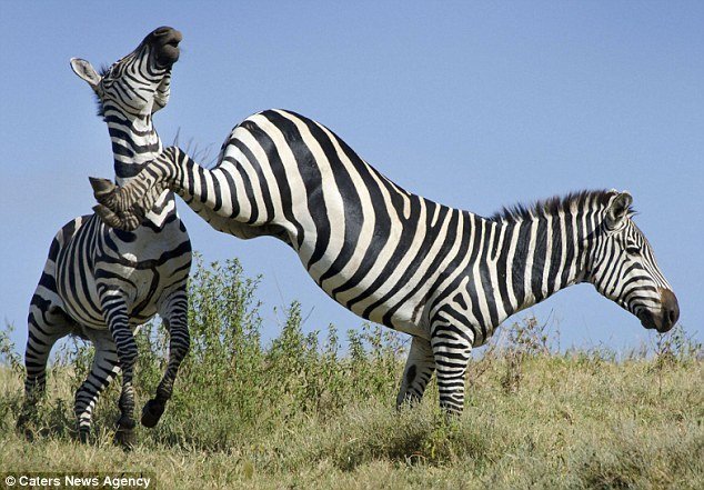 Trong khi 2 con ngựa đực vằn vừa chơi đùa nhau vừa gặm cỏ trên thảo nguyên tại khu bảo tồn thiên nhiên Ngorongoro Crater ở Tanzania, một con bất ngờ tung ra cú đá hậu cực mạnh vào mặt bạn. Bị chơi xấu, con ngựa vằn còn ngay lập tức tấn công trả thù và cuộc chiến ác liệt giữa hai con ngựa vằn bắt đầu nổ ra.