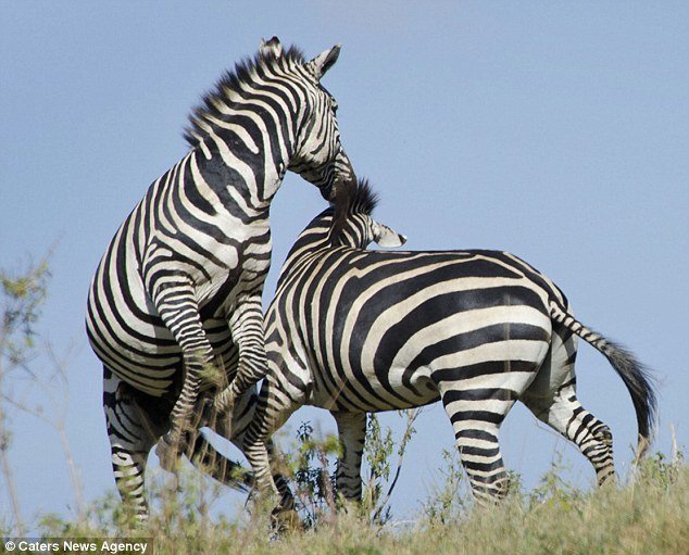 Trò đùa giữa hai con ngựa vằn đực đã nhanh chóng trở thành cuộc chiến ác liệt sau khi một con tung cú đá hậu vào mặt con còn lại.