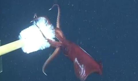 “Ngay lần đầu kích thích, con mực đã vươn rộng các xúc tu và phát sáng như pháo hoa. Kế đó nó tiến lại gần, ôm lấy cây cọ rửa rồi nhanh chóng phóng về phía sau, bỏ lại 2 cái xúc tu dính vào cây cọ rửa”, Bush cho biết. “Chúng tôi nghĩ những móc trên xúc tu dính vào lông cây cọ, đủ để chúng lìa khỏi con mực.”