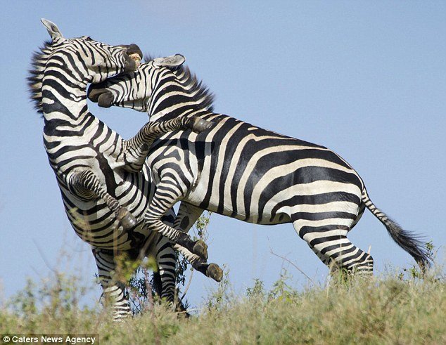 Trò đùa giữa hai con ngựa vằn đực đã nhanh chóng trở thành cuộc chiến