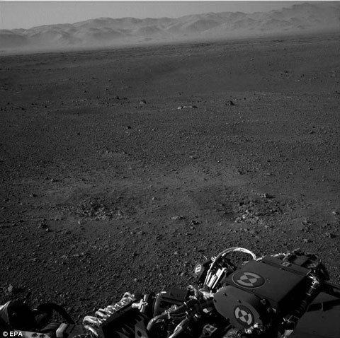 Bức ảnh tự họa do các ống kính Navigation của tàu Curiosity chụp cho thấy “cỗ xe quái vật trên sao Hỏa” mà nhóm tài xế được NASA tuyển chọn phải điều khiển trong tuần tới. Ảnh: Reuters |