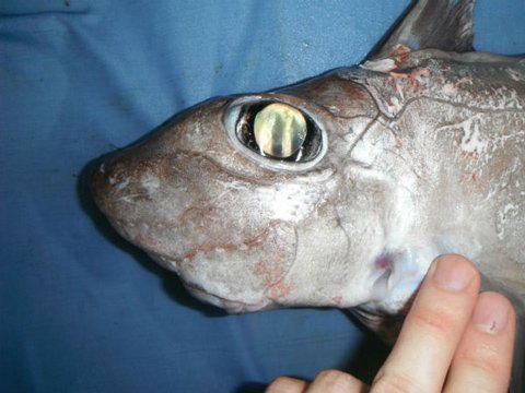 | Một trong những loài cá mập ‘ma’ có mặt hình mặt trăng và răng thỏ. |