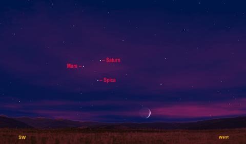 Lời khuyên của chuyên gia là: Để tìm thấy sao Hỏa, hãy nhìn thấp xuống bầu trời phía tây ngay lúc xế tà. Hành tinh đỏ sẽ nằm ở vị trị chếch gần 30 độ phía trên đường chân trời.