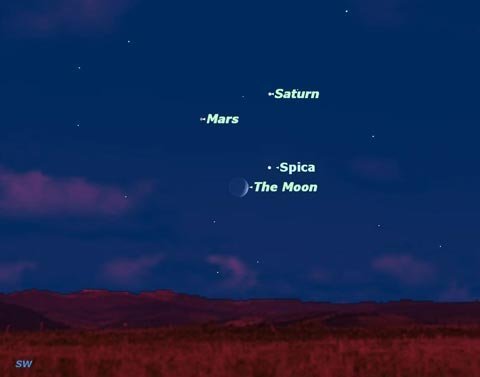 Vào ngày 21/8, Mặt trăng dịch chuyển gần sao Hỏa, sao Mộc và sao Spica, tạo điều kiện cho những người yêu thiên văn quan sát được bộ ba thiên thể dễ dàng hơn. Ông Rao nói, lần tiếp theo Mặt trăng sẽ chiếu sáng gần sao Hỏa là vào đêm 19/9 tới.