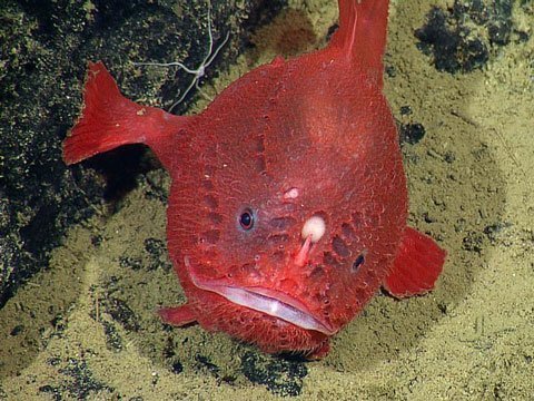 Một con cá vây chân đang kiên nhẫn rình mồi, chờ đợi thời cơ “chộp” những con cá tò mò. Trên đầu nó là mẩu thịt lủng lẳng được gọi là "esca", đóng vai trò như mồi nhử. “Đây là loài mai phục săn mồi. Nếu thứ gì đó lại gần, chúng sẽ mở cái miệng rộng ngoác và nuốt bất kể thứ gì”, ông Lundsten giải thích.