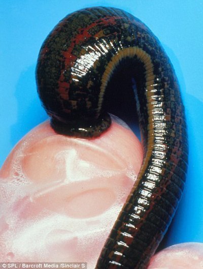 | Loài đỉa trâu này khi trưởng thành có thể dài tới 20cm. Vết cắn của đỉa tạo ra vết thương chảy máu trong nhiều giờ và nước bọt của chúng chứa những chất gây tê vết thương, làm giãn mạch máu để tăng lưu lượng dòng chảy và giữ cho máu không đông. |
