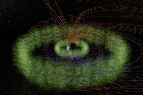 Hai vành đai bức xạ hình bánh rán của Trái đất trải dài hàng ngàn km trong không gian. Những vành đai bên trong và bên ngoài này chứa đầy các hạt mang năng lượng cao từ Mặt trời và những nơi khác trong vũ trụ nhưng bị từ trường Trái đất bắt nhốt lại.