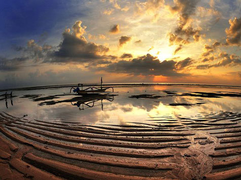 | Mặt trời mọc trên biển Sanur, Bali. |