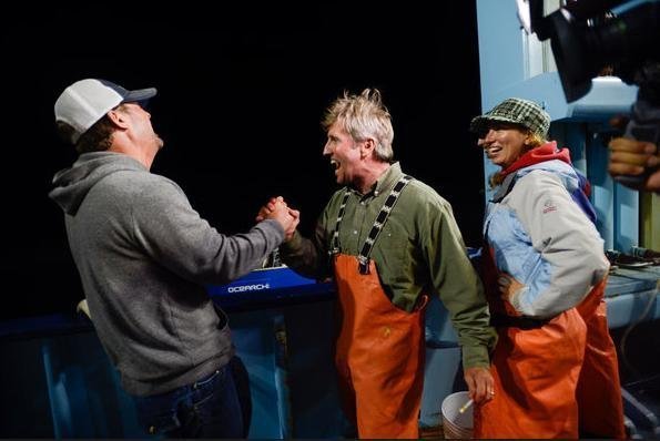 | Ông Chris Fischer (trái) bắt tay chia sẻ niềm vui với ông Skomal sau khi việc gắn thẻ thành công lên con cá mập trắng đầu tiên ở vùng biển Bắc Đại Tây Dương. Việc theo dõi trực tuyến cá mập trắng cũng có thể giúp cảnh báo người dân ven biển và khách du lịch khi cá mập trắng lang thang vào khu vực gần bờ biển. |