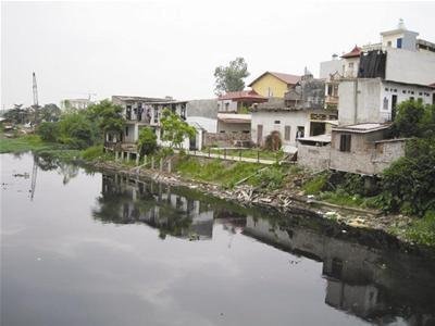 Nước sông Nhuệ đang ô nhiễm nặng. |