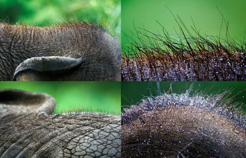 Lông trên đầu một con voi châu Phi (trái) và trên lưng của một con voi châu Á (phải). Ảnh: Live Science |