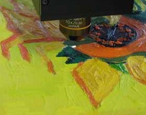 Từ khoảng cách không đầy 1,5cm, các nhà nghiên cứu sử dụng một kính hiển vi phức tạp gọi là máy đo biên dạng tiêu điểm ánh sáng trắng để đo độ ráp của 1cm2 của một bức tranh. Bằng cách hướng một camera đặc biệt vào cùng vị trí, nhóm nghiên cứu đã tạo ra một "dấu vân tay" quang phổ ghi lại cách thức ánh sáng phản chiếu trên tranh. Việc làm này cung cấp các thông tin giá trị về màu và chất nhuộm sử dụng trong tác phẩm hội họa. Cuối cùng, hình ảnh về điểm lấy dấu "vân tay" của bức tranh được lưu lại phục vụ mục đích tra cứu trong tương lai.
