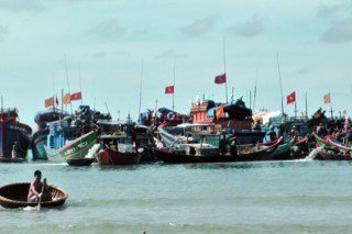 Rất nhiều tàu thuyền của người dân đậu tại khu vực có xác chiếc tàu cổ để tìm cổ vật. |