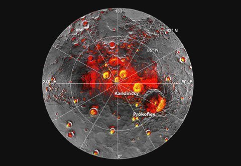 Bằng chứng về sự tồn tại của nước ở dạng băng trên sao Thủy có thể nhìn thấy rõ từ vĩ độ 85 độ Bắc tới cực Bắc của hành tinh này, với các lớp băng nhỏ hơn nằm rải rác, xa tới 65 độ Bắc.