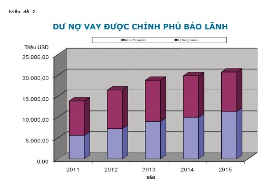 Tính đến hết 2015, tổng số nợ thực tế được Chính phủ bảo lãnh là khoảng 21 tỷ USD (bao gồm cả nợ được bảo lãnh để tái cơ cấu Tổng công ty công nghiệp tàu thủy Việt Nam - SBIC). Con số bảo lãnh này chiếm khoảng 17,6% tổng dư nợ công và bằng 11,1% GDP. Đáng chú ý, riêng trong giai đoạn 2011-2015 đã có sự “bùng nổ” về bảo lãnh các khoản vay.