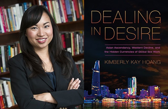 Cô Kimberly Kay Hoang và quyển sách đúc kết quá trình nghiên cứu về vai trò của mại dâm trong hỗ trợ các vụ làm ăn chính thống. |