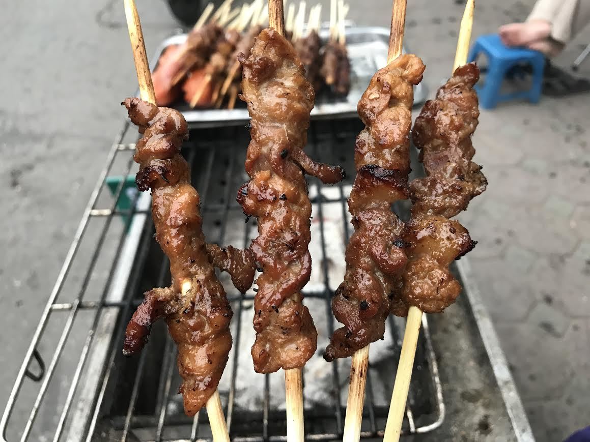 Thịt xiên nướng 10.000 đồng/4 xiên bày tràn ngập trên phố Tôn Thất Tùng