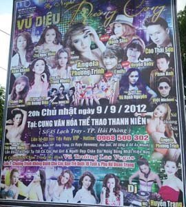 Quảng cáo của chương trình ca nhạc “Vũ điệu đường cong do” tại TP Hải Phòng đã khiến hàng trăm người dân bất bình, bức xúc vì in đậm lưu ý: “Chương trình không dành cho các bạn trẻ dưới 18 tuổi và phụ nữ đoan trang” trên tấm pano lớn.
