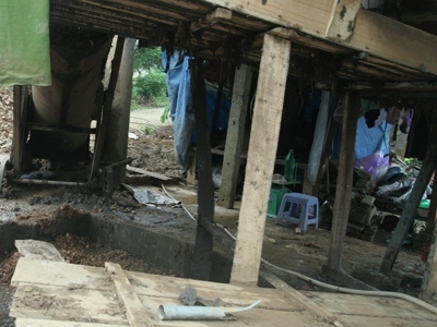 | Nơi xay bột dong để làm miến chỉ cách cầu tiêu tự hoại chưa đầy 1m. |