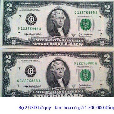 | Bộ 2 USD tứ quý – tam hoa có giá 1.500.000 đồng. |