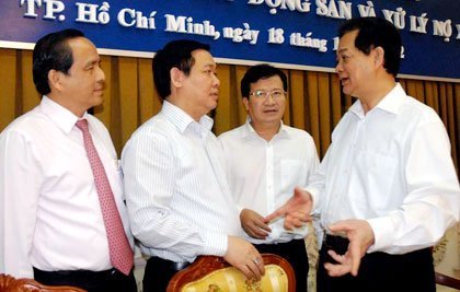 Sáng 18/12, Thủ tướng Nguyễn Tấn Dũng dẫn đầu đoàn công tác của Chính phủ làm việc với lãnh đạo TP.HCM về giải pháp tháo gỡ khó khăn đối với thị trường bất động sản (BĐS) gắn với xử lý nợ xấu.