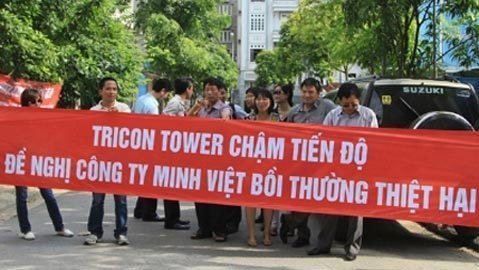 Hàng trăm khách hàng bỏ tiền tỷ đặt cọc mua nhà tại dự án Tricon Tower của Công ty CP Đầu tư Minh Việt, đã mang theo băng rôn tới trụ sở công ty để đòi lại tiền. Theo nguyên tắc nội dung ký kết, Công ty CP Đầu tư Minh Việt sẽ phải giao nhà cho khách hàng vào ngày 31-12-2011, muộn nhất là ngày 30-6-2012. Tuy nhiên đến nay, dự án này mới hoàn thiện phần móng và đã “đắp chiếu” từ nhiều tháng.