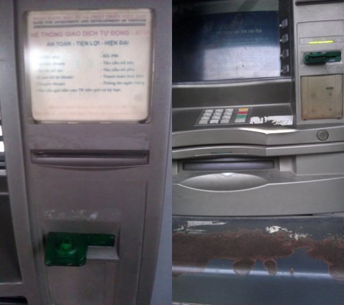 | Theo quy định, ở vị trí khe cắm thẻ, ngân hàng phải chỉ dẫn hướng cắm thẻ cho khách hàng. Tuy nhiên, sau thời gian hoạt động, nhiều cây ATM đã trở nên cũ kỹ, màn phím mờ, không còn cả hướng dẫn cắm thẻ vào nơi giao dịch cũng như bị han gỉ... |