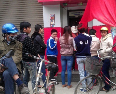 | Ở nhiều cây ATM, chủ thẻ phải xếp hàng dài mới tới lượt. |