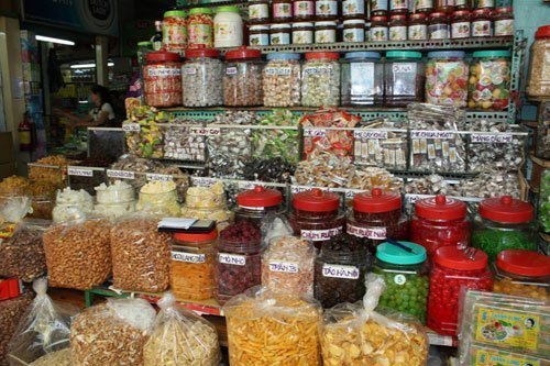 Tại chợ đầu mối Đồng Xuân, hàng tết bày bán tràn ngập chợ, nhất là tại các gian hàng thực phẩm khô, bánh kẹo, đồ phụ kiện trang hoàng tết… Hiện, tại chợ này măng củ khô có giá 250.000 đồng/kg loại ngon, loại bình thường có giá 220.000 đồng/kg, măng vầu có giá 150.000 – 240.000 đồng tùy loại, mộc nhĩ không chân có giá 150.000 đồng/kg, nấm hương loại 1 có giá 300.000 đồng/kg, tôm nõn loại nhỏ giá 400.000 đồng/kg, loại to giá 730.000 đồng/kg…