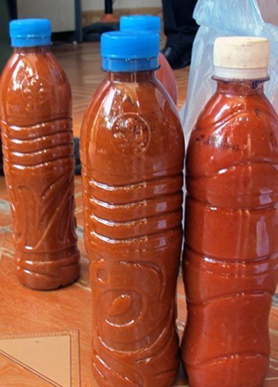 | Tương ớt thường được mua theo từng can lớn |