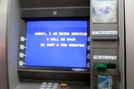 | Nhiều cây ATM luôn ở tình trạng “sorry...” khiến khách rút tiền bực bội. |