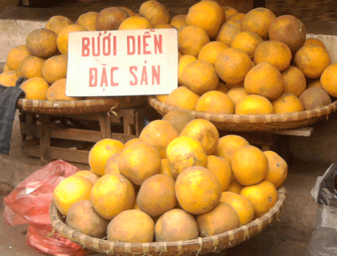 Dừng chân tại một điểm chuyên bán hoa quả tại một chợ cóc trên đường Trần Thái Tông (Cầu Giấy – Hà Nội) để hỏi mua bưởi, được chị bán hàng chào mua: “Mua bưởi da xanh hay bưởi Diễn? Bưởi Diễn chị về tận nhà vườn để lấy đảm bảo hàng chuẩn, ăn lần sau muốn quay lại mua tiếp”.