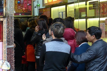 Dạo qua cửa hàng vàng như: Bảo Tín Minh Châu, Phú Quý, Doji… trên phố vàng Trần Nhân Tông (Hai Bà Trưng, HN) thấy các cửa hàng vàng bạc đều chật kín khách ngồi chờ mua vàng. Hoạt động mua bán vàng lẻ ngày này trở nên nóng hơn khi ai cũng muốn mua vàng trong ngày vía thần Tài lấy may.